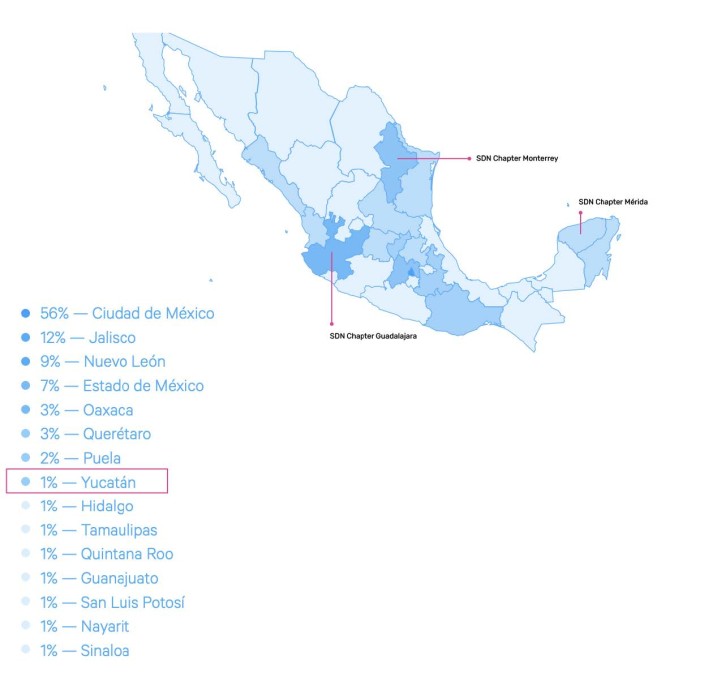 In 2020, the SDMX conducted a study to assess the status of service design across Mexico. That was the most recent survey of its kind in our country. At that time, only 1% of people in Yucatán were engaged in Service Design. We believe that, four years later, this percentage has increased to 5%.