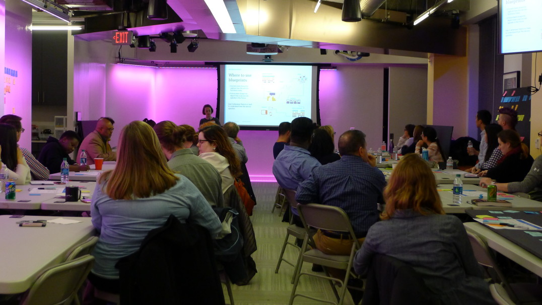 After some interactive training and an hour of lively collaboration (and pizza munching), our six teams of both new and seasoned service designers were able to come away with a deeper understanding of blueprinting, as well as a stronger sense of community. Service design is a growing topic in the DC area, and based on the participation during this event, it just got an awesome boost. Huge thanks to Capital One for hosting the event!