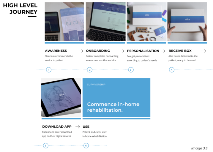 In the UK, there are more than 11,500 new cases of a brain tumours every year, which is equal to a 34% increase in the incidence rate of brain tumour since the 90s. At least 102,000 children and adults are currently living with a brain tumour in the UK alone. This report introduces Alke, a service for people with a brain tumours and their carers, that helps them understand, adapt and easily manage their rehabilitation on a daily basis. Alke has the potential of facilitating the rehabilitation experience of patients with a brain tumour and their carers by enhancing self- management, introducing a digital communication channel for patients and their carers to connect with clinicians, while providing a holistic and personalised approach that understands the patient’s status and supports them in strengthening their cognitive and physical functions through engaging activities. The overall aim of the service is to enable patients to be in charge of their rehabilitation journey. With Alke, we are more than just creating a new healthcare service. We aim to spread the awareness for brain tumour and interconnect patients, carers, physicians, and the support communities. The project has been validated by users, experts in healthcare and technology but has not been implemented.