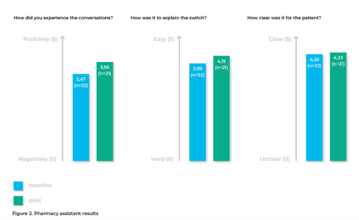 The surveys used during the pilots - for both the pharmacy assistants and the patients - have been added to the visual document. During the pilot, the assistants were instructed on how to use the toolkit and the visual aids. A scenario to help with this instruction is added to the visual document. It is important to note that in every pharmacy the way of working can be slightly different. This required flexibility in how to use the toolkit during the pilot and will require the same flexibility to find a way of working that works for the specific pharmacy it’s launching in.