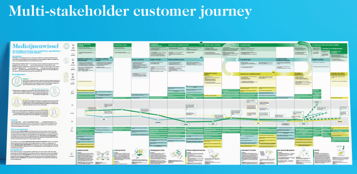 The insights from the explorative interviews were used to create a customer journey.¹ This is a multiple stakeholder customer journey, which allows you to see the connections in the journey among all relevant stakeholders. This customer journey has been used as a tool for innovation, but is also used as a way to convey the problems at hand and to present the seriousness of the matter.