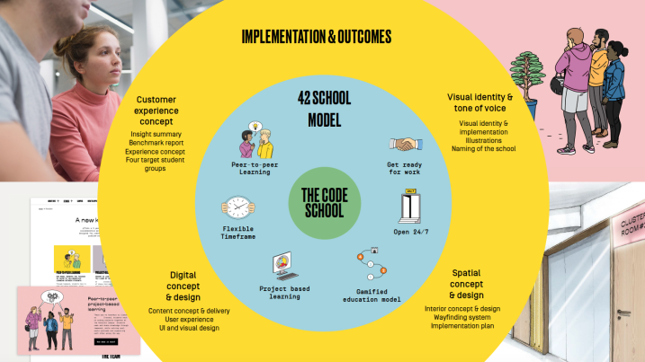 The company's CEO wanted to base the school on the French 42 school model, where learning takes place through peer-to-peer collaboration, creative problem-solving and project based learning. The concept comes with an established curriculum, but everything else about the school and its student experience needed to be designed from scratch. The client