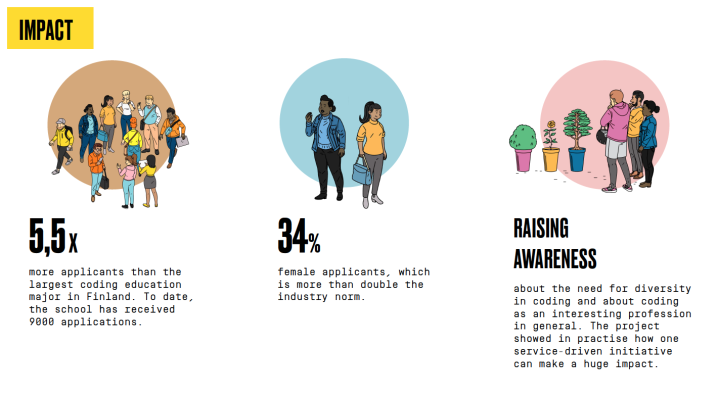 These numbers support the fact that the school has indeed made a massive impact, and that interest is coming not only from potential students, but from a wider audience too. The school has been featured in Finnish media reports almost every week, and has ignited a broader public discussion about the importance of studying coding. The discourse has shifted to a view that studying coding is indeed for everyone, and that it is about helping to solve some of the world's biggest challenges.