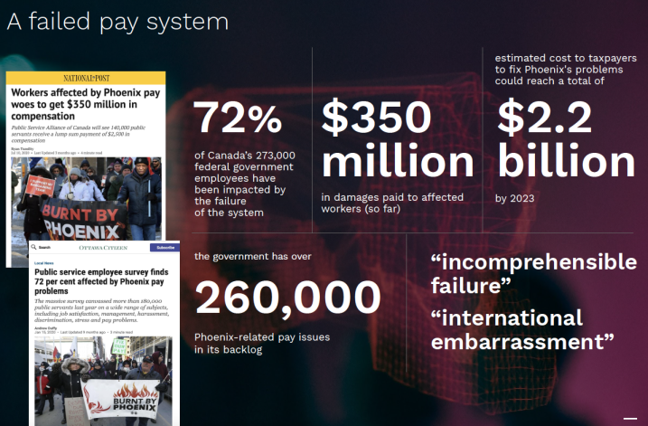 We’ve also heard directly from employees, with clients raving about the impact to their experience saying, “Wow this is incredible – this was with Phoenix for 3 years and the pay desk fixed it in less than two weeks!,” and, “you’ve accomplished in days what a lot of other groups couldn’t in months,” and “…your staff are not just solving problems and finding missing years, they are removing some major stress from our lives,” and “my thanks to your team for their dedication and hard work on behalf of SSC employees who seemingly have nowhere else to turn to for much needed assistance with their pay issues.”