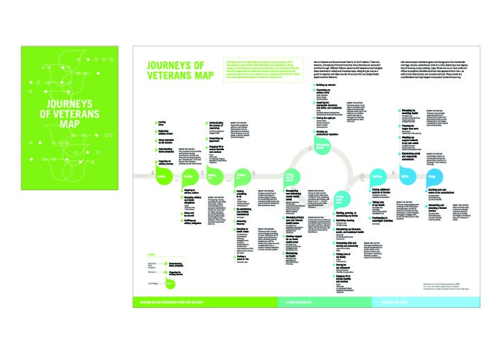 Set of Communication Materials Veterans needed a simpler way to understand VA’s full scope of offerings. Our communication materials organized VA benefits and services across the phases of the Journeys of Veterans map, enabling Veterans to see the full scope of offerings according to when they might use them during their life. This supported Veterans in making informed decisions about which services to access at the most appropriate time in their lives.