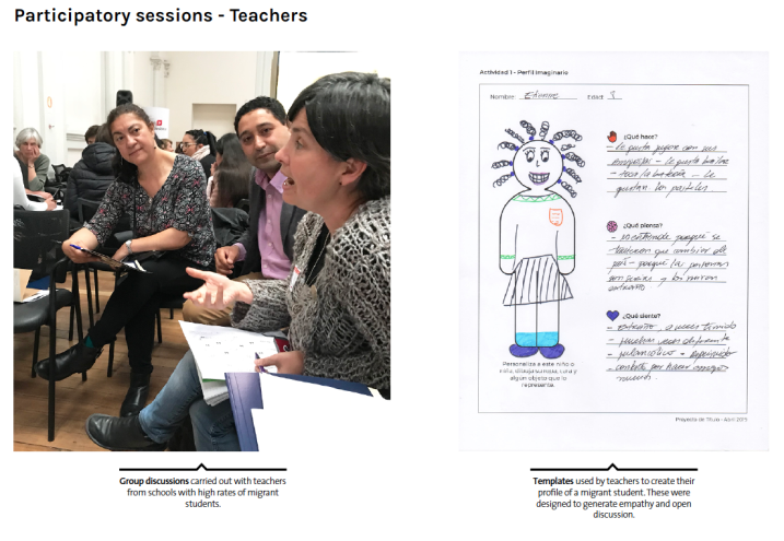 During this stage, desk research was used to analyze different references, context data and case studies surrounding migration and education in Chile. Then, interviews were conducted with experts, such as teachers, municipal workers and migration specialists to better understand how different institutions were tackling this issue. These helped identify the key actors involved, allowing the project to integrate different dimensions of migrant students, while also helping connect with important allies, such as an education and migration ONG, who then decided to participate in the
