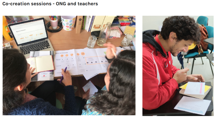 Ideation consisted of iterative design and prototype. Insights developed in earlier stages were presented to the ONG, teachers and students, who participatedin co-creation sessions to generate design proposals. A preliminary program was created and tested with three different grades, using a MVP logic to test the key elements of the service. This allowed constant learning for the team and several adaptations were made in the next two