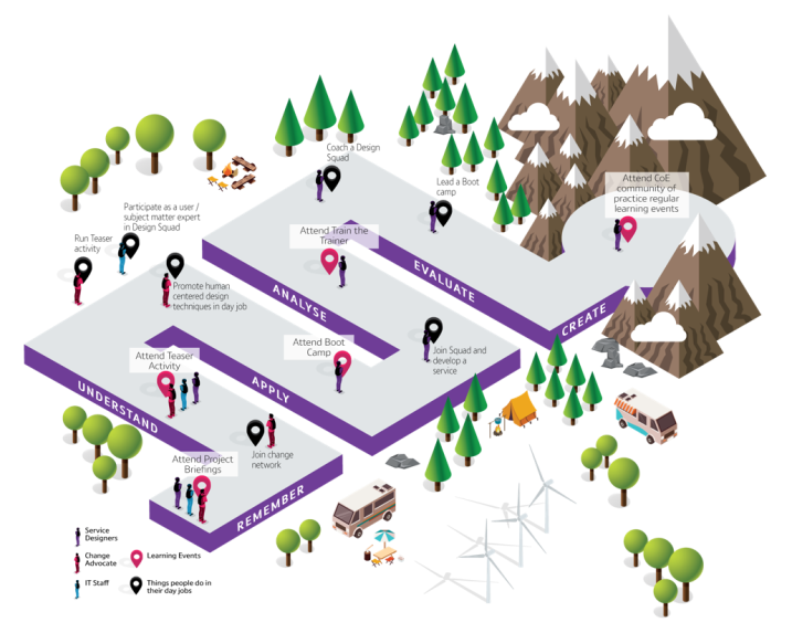 - Develop a five-day Service Design applied training programme (called Bootcamp) with an assessment framework to measure mindset, knowledge-set, skill-set and tool-set against learning objectives