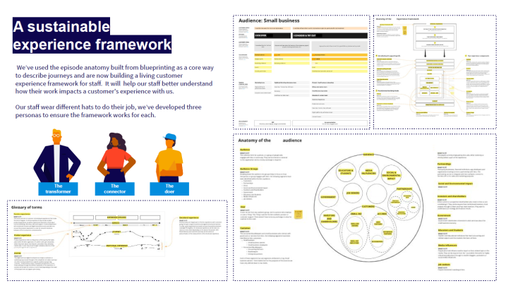 The maps are kept up-to-date, so our staff can use them to understand the current state of the experience their area delivers and identify any immediate opportunities. Blueprinting has enabled us to create a shared understanding of the services we deliver, create visibility and help disconnected teams work together in more focussed and deliberate ways. Aligning staff around the customer episodes has become the best way to break down internal departmental silos and focusing on delivering experiences directly for our customers. We have aligned sales motions, marketing metrics and projects to the episodes within the service blueprint, and have started to build an entire experience framework around them.