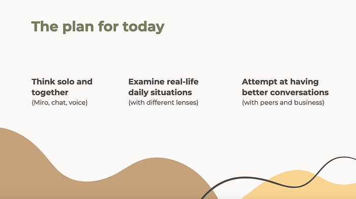 In our next and final few exercises, Nata asked us to challenge ourselves, tackle ethical issues in a fun, creative way — “let’s do ethical!”