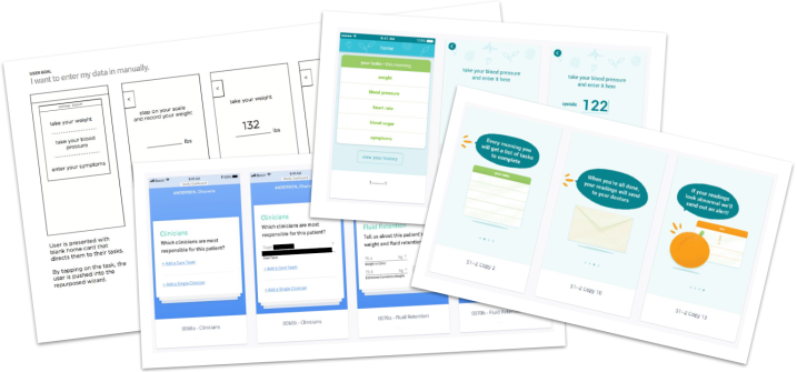 (i) Discovery: We began by immersing ourselves into the world of chronic condition management and remote patient monitoring through an in-depth literature review and conversations with experts in this space. We then spent an entire week in the cardiac clinic observing what happens day-in and day-out, with a focus on understanding the culture of the clinic, the ways in which people work, the ways in which people experience care, and the blockers and facilitators of change.