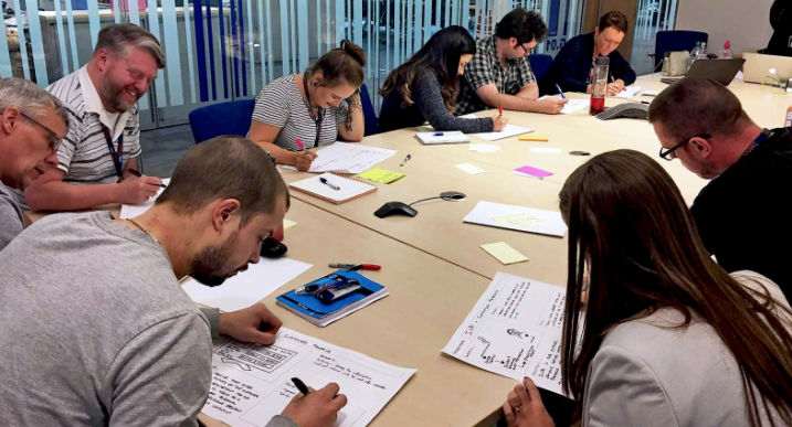 We established a pop-up design studio in the contact centre in Glasgow bringing together a multi- disciplinary team from across the bank. Successfully resolving complaints takes a knowledgeable and empowered team of customer service representatives, backed up by complaint resolution experts and supported by experienced managers. Recognising this we bought together the customer service representatives (CSRs) who take customer calls; customer relations officers (CROs) who specialise in handling complaints; UX designers from the bank’s internal design team; the bank’s Head of Customer Care; their Customer Services Director and their Head of Digital and Marketing Strategy.