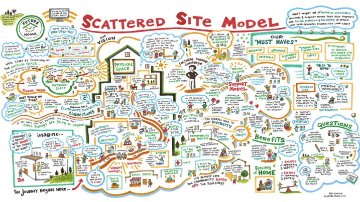 The Future of Home project was a social innovation lab aimed at creating housing and support models that are affordable, accessible, and foster social inclusion for people with developmental disabilities. The project brought together a diverse group of stakeholders, including individuals with developmental disabilities, their families, service providers, funders, architects, advocates, and housing developers. It was a collaborative effort between Skills Society Action Lab, Inclusion Alberta, Civida, and Homeward Trust, funded by the Canada Mortgage and Housing Corporation National Housing Strategy. The primary goal was to address the critical shortage of housing that meets the unique needs of people with developmental disabilities in Canada.