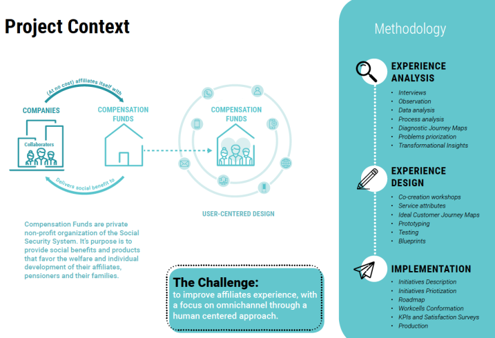 Compensation Funds are private non-profit organizations of the Chilean Social Security System, whose purpose is to provide social benefits and products that favor the welfare and individual development of their affiliates, pensioners and their families. Companies are able to join the Compensation Funds free of charge, and their collaborators become affiliates who are then able to access the benefits offered. This project was done with Chile’s most prominent company in the industry.