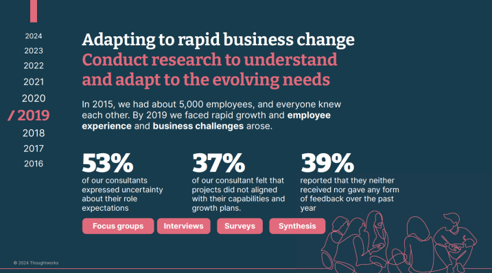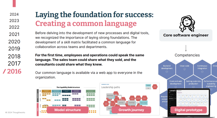 Thoughtworks is a global technology consultancy that experienced rapid growth and faced challenges in maintaining its culture of continuous learning. This service is a result of the collaboration between IT and HR to create an ecosystem of new digital tools and business processes to unlock employee growth while streamlining operational efficiency for the business.