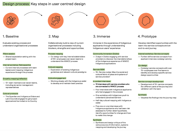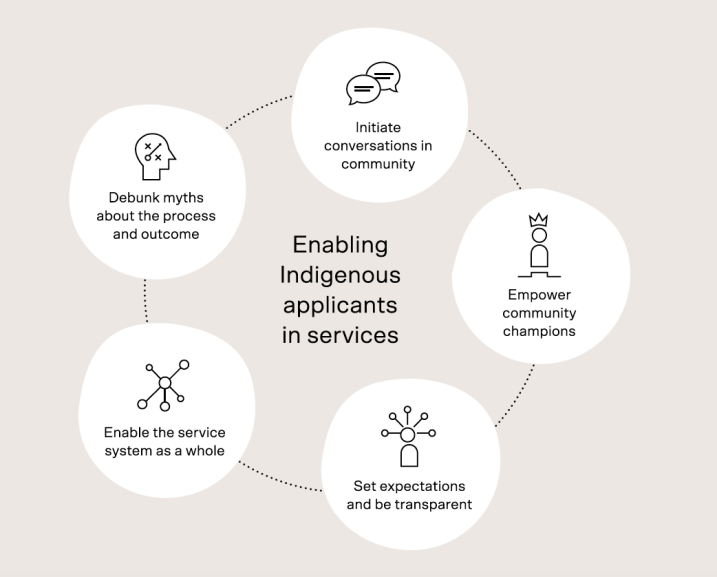 To approach this challenge there were multiple facets that we needed to consider to co-design appropriately. It was essential to properly understand the experience of Indigenous Australians; what it’s like to apply, how it relates to intergenerational trauma and discrimination, and what specific community needs are.